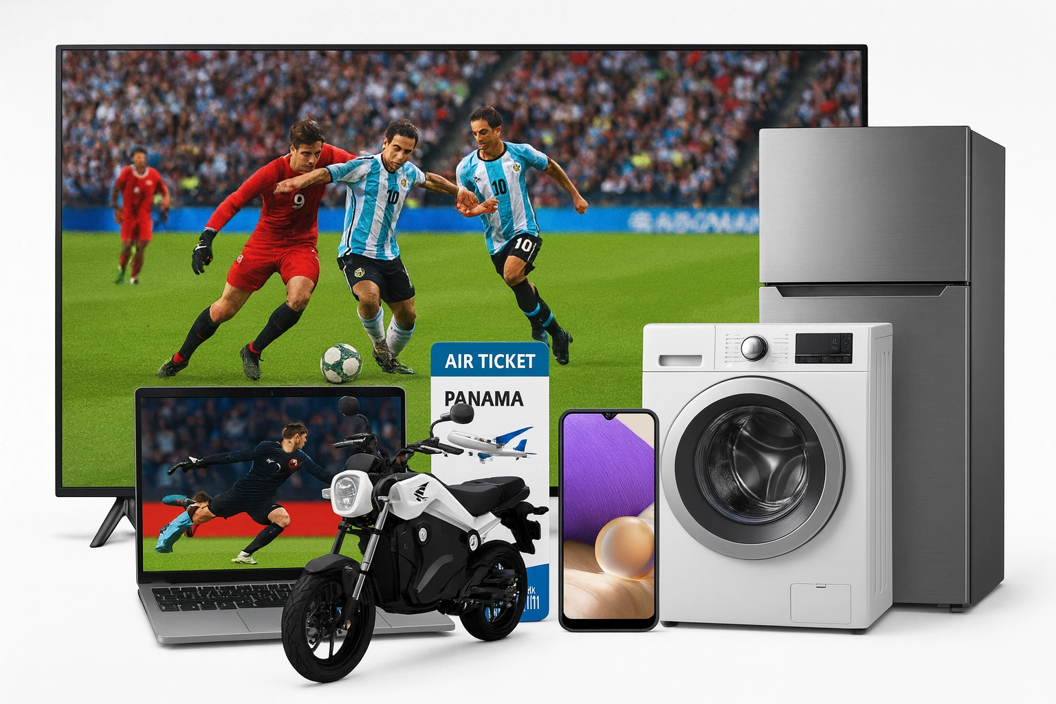 Estás a un paso de llevarte una TV Samsung de 65″, una moto eléctrica, un celular, un pasaje a Panamá 🇵🇦, una computadora… ¡y mucho más!